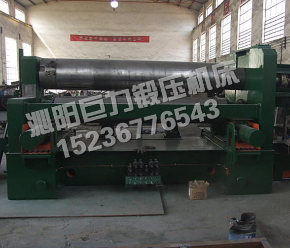 2、三個工作輥均為主動輥,上輥升降和兩下輥平移均由NC控制,確保對任何厚度的板材有良好的送進卷制功能,且板材始終處于夾緊狀態(tài),避免板材滑動、跑偏;